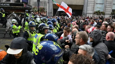 More than 100,000 participants attended a rally in central London organized by far-right activist Tommy Robinson, known for anti-immigration views, with a simultaneous counter-protest by around 5,000 anti-racism supporters from Stand Up To Racism. The Metropolitan Police reported nine arrests due to significant aggression, including incidents where officers were attacked with projectiles. Robinson addressed attendees, criticizing government policies and calling for a change of governance, while tech billionaire Elon Musk appeared via videolink. Counter-protesters emphasized unity against racism, with speeches from figures like independent MP Diane Abbott, who highlighted historical struggles against fascism. The police enforced strict divisions between the two groups and managed the events with over 1,000 officers deployed. The protests reflect ongoing tensions in UK society surrounding immigration and racial identity.